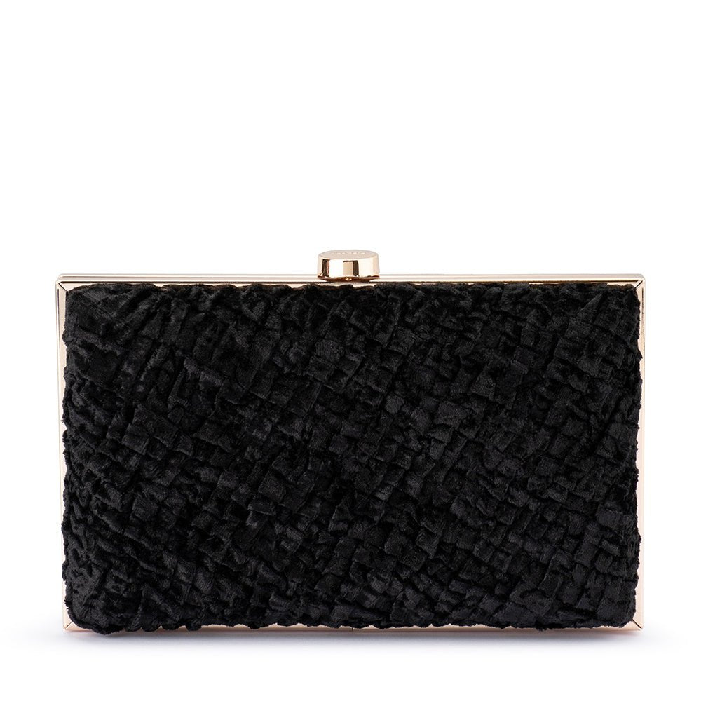 The HAZEL Textured Velvet clutch features a slightly textural velvet fabrication contrasted by a slim, sleek frame and block lock closure. A classy addition to any outfit, this lush hardcase clutch proves that sometimes less really is more.