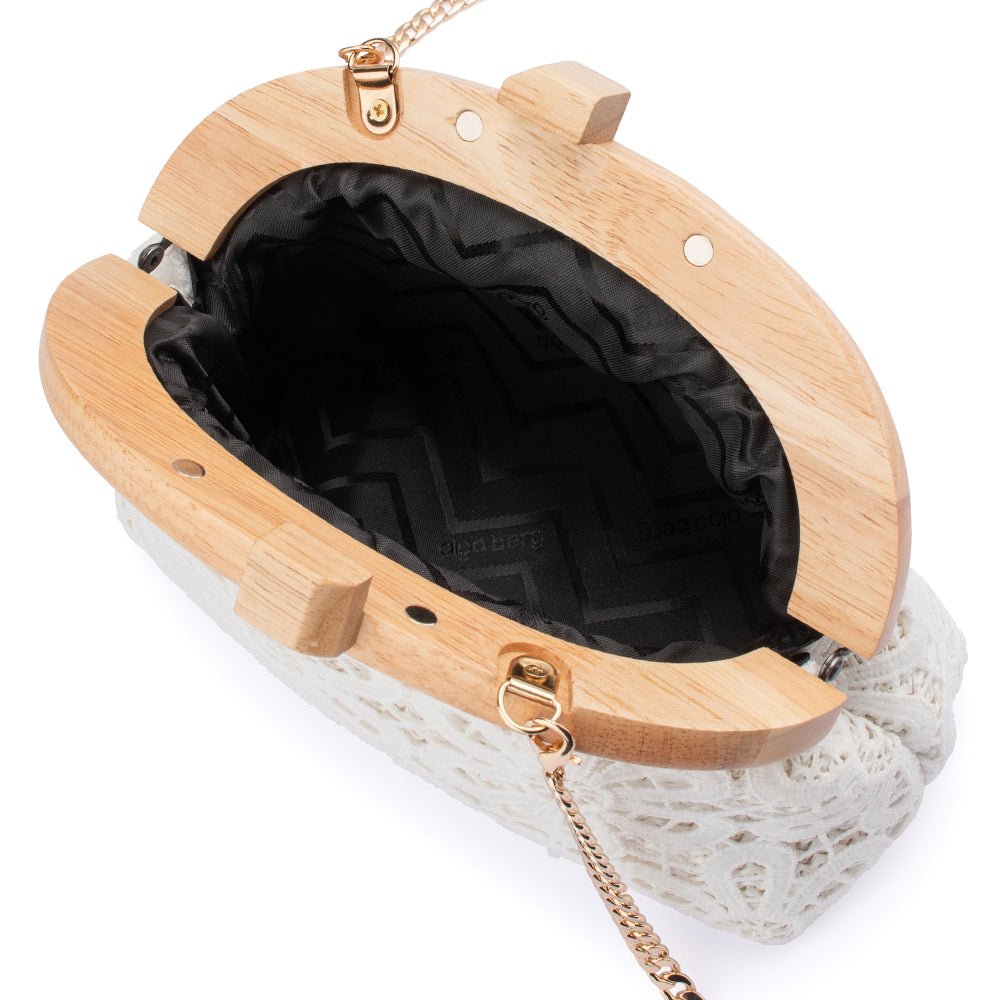 The BONNIE Lace Clutch is the perfect accessory to elevate any style, day or night. With a unique wooden frame and textured body, this roomy clutch will bring a touch of sophistication to any outfit. BONNIE also includes a shoulder chain for when you need to go hands free.