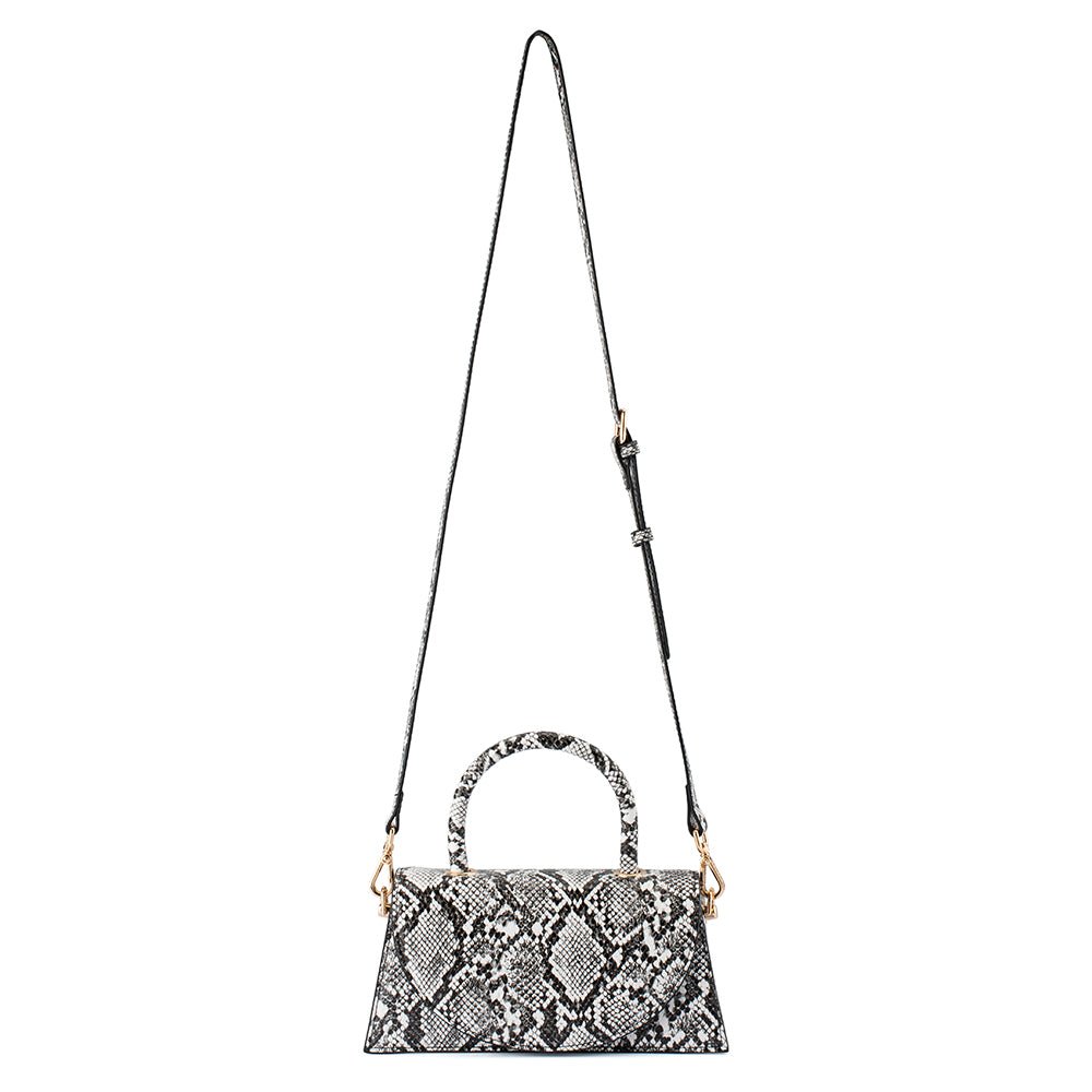 The KENDALL Printed Top Handle bag is perfect for your next night out. Featuring an eye-catching reptile print and sleek shape, this stunning bag is perfect for making a bold statement and is sure to effortlessly elevate any look. KENDALL also includes a removable shoulder strap that conveniently detaches when not in use.