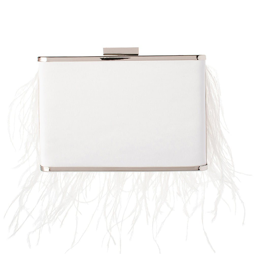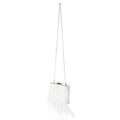 Walk on the wild side with this stunning white feather clutch bag. Showcasing layers of genuine feathers, this conversation-starting feather clutch bag is perfect for the modern bride or red carpet. Large enough to store all of your day to night essentials, this bag is as functional as it is beautiful.
