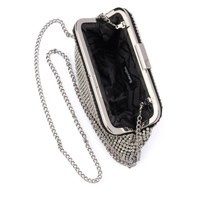 The JERRY Crystal Mesh Vintage inspired clutch features a luxe crystal exterior to add plenty of sparkle to your look. This timeless clutch is finished with a detachable graduated chain handle. Fit all of your event essentials inside this clutch which is large enough for your smart phone, cards, cash and lippy. Conveniently includes a long, detachable shoulder chain for when you need to go hands free.