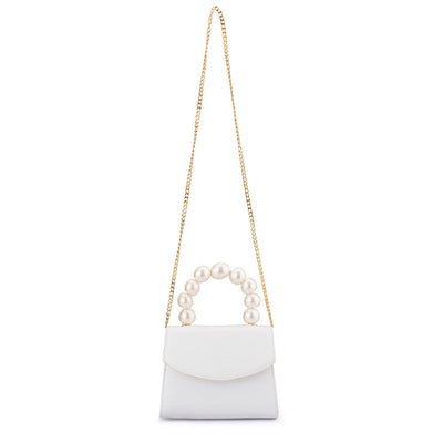 Elevate your day and night time looks with the super cute PETA pearl bead handle bag in White. It features a pearl bead top handle which contrasts beautifully with the structured body. It has plenty of room for a large smartphone, sunglasses and makeup essentials and includes a removable shoulder chain so you can switch to hands free at a moment's notice.