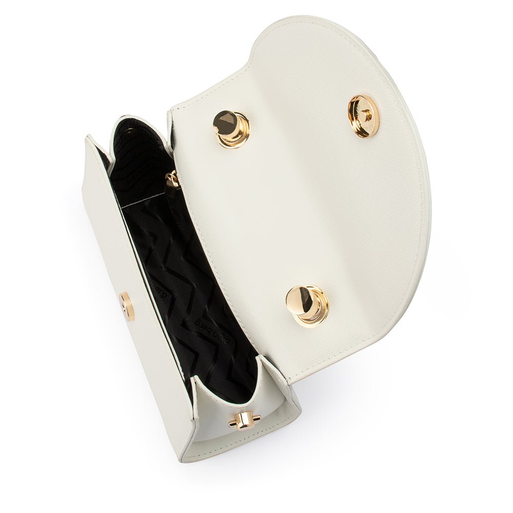 Add some polish to your day and night time looks with the super cute SASHA White Top Handle Bag. This stunningly minimal bag has plenty of room inside for a large smartphone, sunglasses and makeup essentials and includes a removable shoulder strap so you can switch to hands free at a moment's notice.